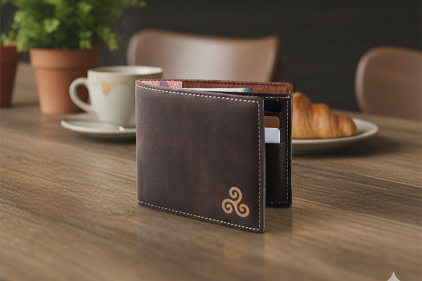 Un portefeuille sobre et utile pour cartes et billets.