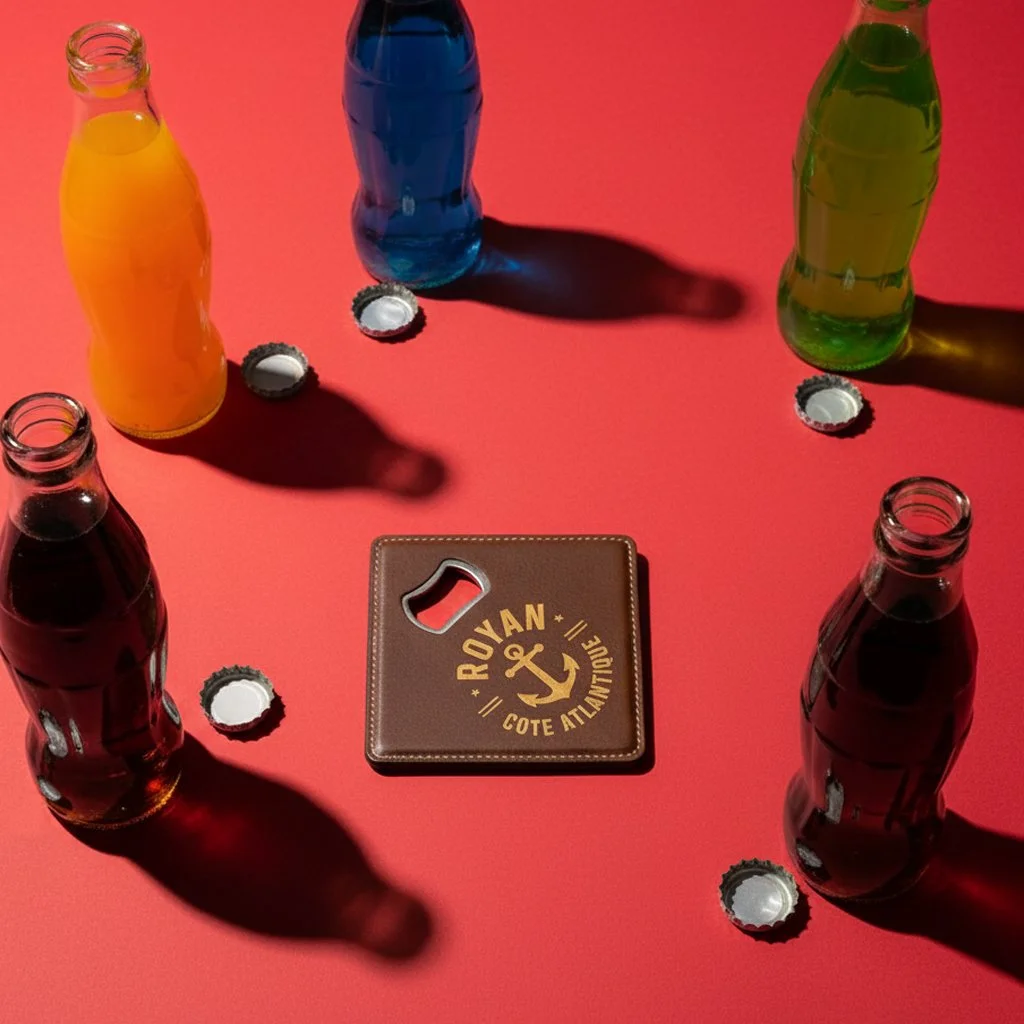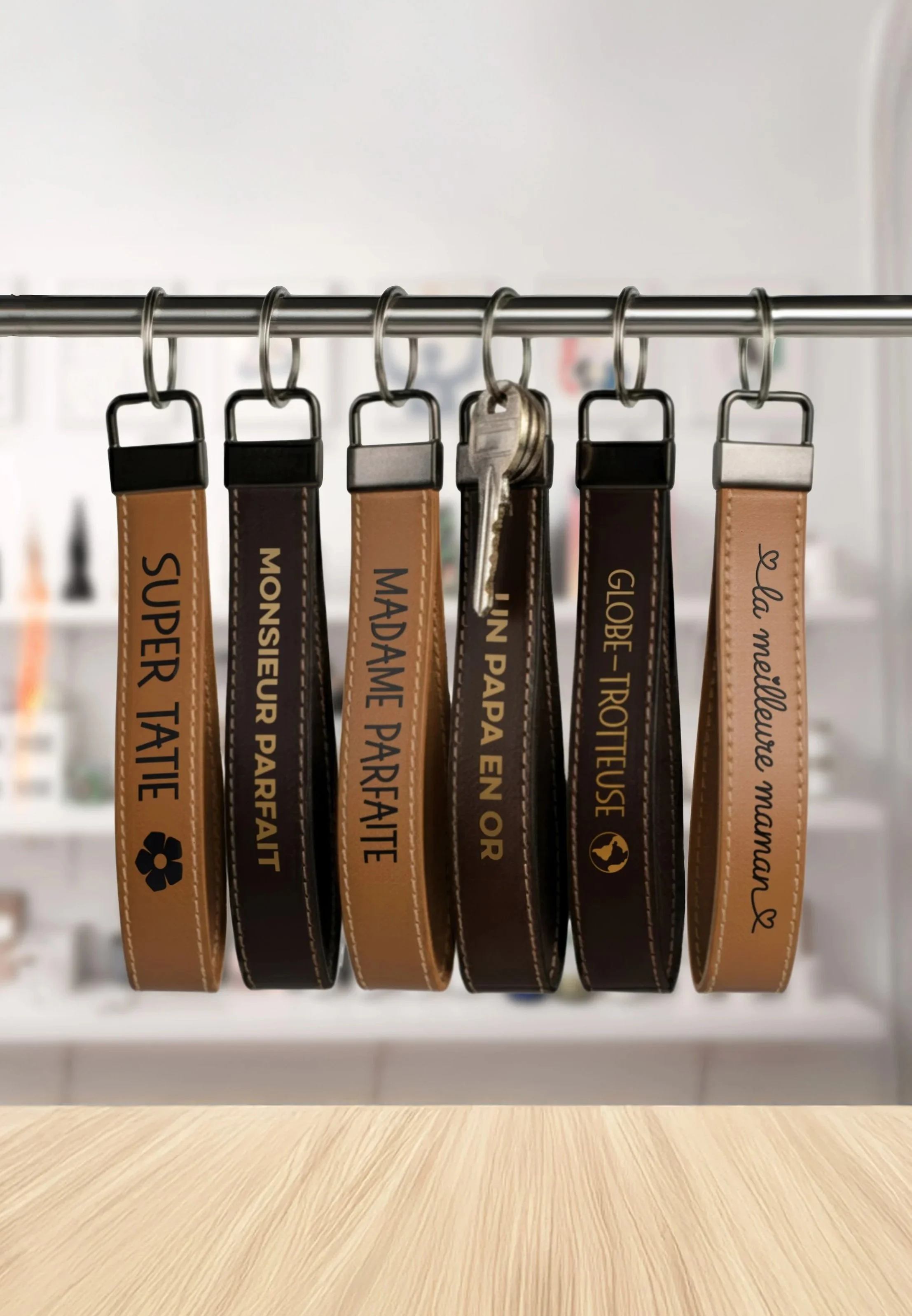 Nous utilisons un matériau exclusif, sans matière animale, qui imite parfaitement l’aspect du cuir, tout en restant relativement abordable. Ce support, associé à notre gravure laser, garantit un rendu qualitatif, net et durable.